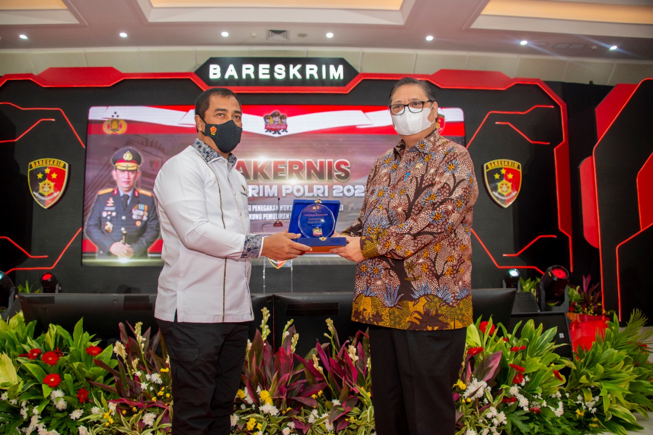 Menteri Koordinator Bidang Perekonomian Airlangga Hartarto dalam pidatonya yang berjudul “Kebijakan Kemenko Perekonomian dalam mendukung Pemulihan Ekonomi Nasional” pada acara Rakernis Bareskrim Polri T.A. 2021 di Jakarta pada Selasa (06/04) menyampaikan terimakasih kepada seluruh jajaran Polri dan TNI yang berhasil mengawal Pelaksanaan Pembatasan Kegiatan Masyarakat (PPKM) mikro.