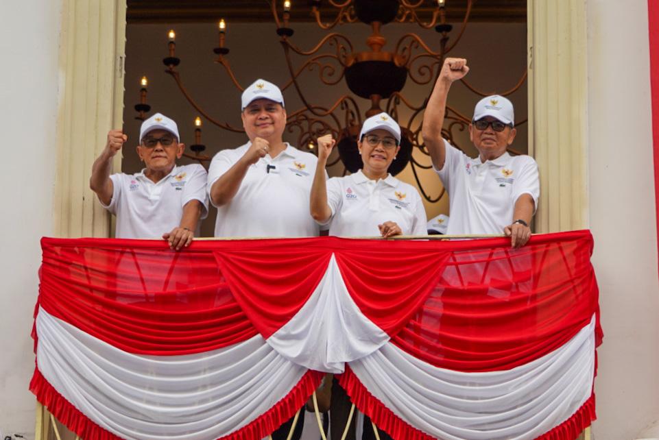 Menko Airlangga juga menyampaikan, turut hadir dalam kegiatan pagi tadi, para Menko Perekonomian periode sebelumnya, Bapak Burhanudin Abdullah, Bapak Aburizal Bakrie dan Ibu Sri Mulyani.