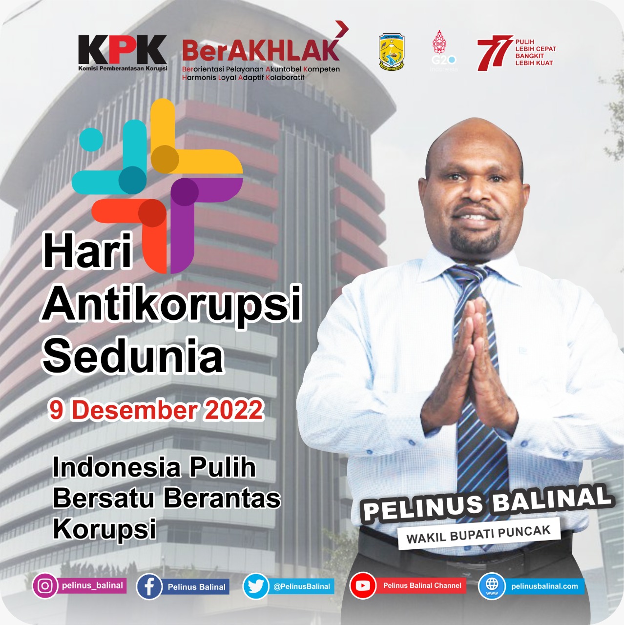 Di Indonesia, Komisi Pemberantas Korupsi membawa tema “Indonesia Pulih Bersatu Lawan Korupsi.” Wakil Bupati Puncak Papua Pelinus Balinal memberikan komentarnya tentang tema dan peringatan ini secara umum.